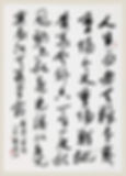 屠新时的书法成就最突出的,我以为是他的行草书和草书。草书、大草和狂草,可以说是书法艺术中的高级阶段。俗话说;楷如立、行如走,草如跑,草书有章草、今草、狂草之分。章草成于汉代,笔画有章可循,今草是不拘章法笔试流畅,而狂草出现于唐代,最有名的张旭和怀素的狂草,起笔势狂放不屈,几乎脱离实用属性,而凸显出书法艺术独特的“有意味的形式“,以及点画、线条、结构章法的无穷丰富变化的东方艺术价值。屠新时的草书,基本属于大草和狂草这一类的书风,借用杜甫《观公孙大娘弟子舞剑器行并序》中一句话形容屠新时草书:“㸌如羿射九日落, 矫如群帝骖龙翔。来如雷霆收震怒, 罢如江海凝清光”。可以说,满纸都见神来之笔。